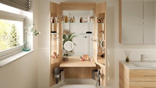 Dénichez la combinaison de couleurs parfaite pour votre salle de bain en comparant une couleur de comptoir et une de meuble pour une collection donnée.