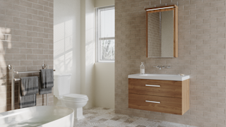 Dénichez la combinaison de couleurs parfaite pour votre salle de bain en comparant une couleur de comptoir et une de meuble pour une collection donnée.