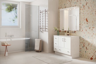 It includes a wide range of products so you can create just the right layout for your dream bathroom: freestanding vanities, full-height mirrors and medicine cabinets, linen cabinets and attached or detached dressing tables.