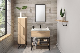 Find the perfect color combination for your bathroom by comparing a countertop color and a cabinet color for a given collection.